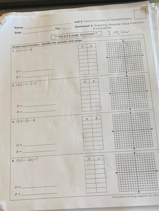 Solved Name Date Unit 3 Parent Functions Chegg Com